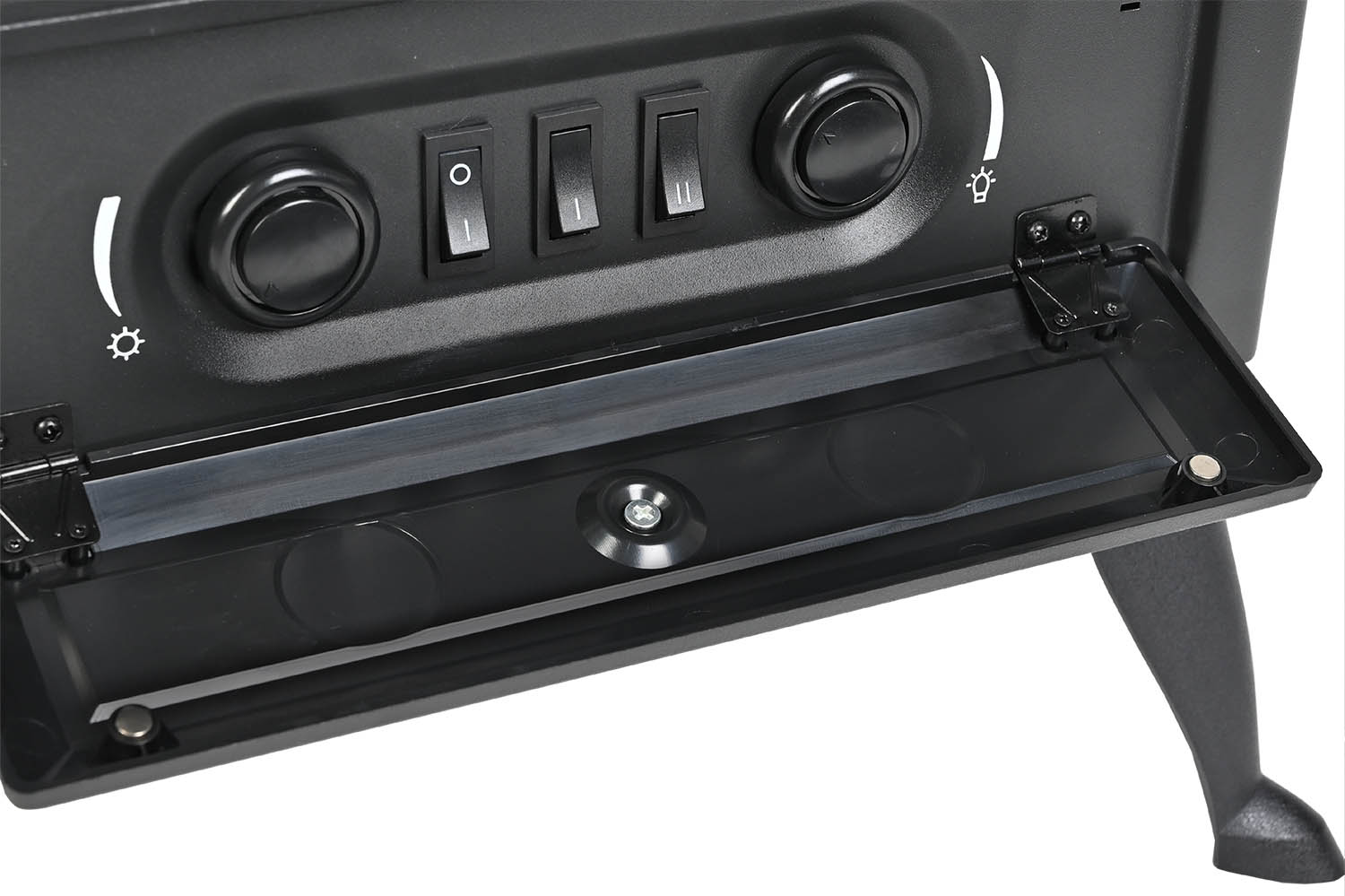 Устройство быстро наполнит теплом помещение до 20 м². Для этого предусмотрены два уровня обогрева: мощный режим 1800 Вт и режим с минимальным потреблением мощности — 900 Вт. Еще одна приятная функция камина — эффект «Real Fire» — реалистичная имитация пламени.