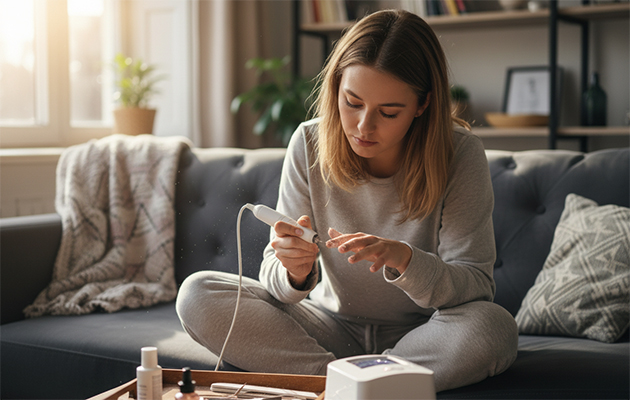 Аппаратное снятие — быстрый и удобный способ, который в 2025 году стали использовать даже дома. Современные бытовые модели часто вибрируют меньше, работают тише и в некоторых случаях автоматически снижают скорость, если фреза перегревается. Но техника остается той же, что и в салоне: главное — аккуратность.