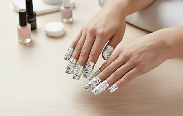 Процедура начинается с легкого запила — удаляется верхний слой топа, чтобы ремувер смог проникнуть в покрытие. После этого ватный диск или специальную салфетку пропитывают жидкостью, прикладывают к каждому ногтю и оборачивают фольгой. В 2025 году многие используют клипсы — удобный фиксатор, заменяющий фольгу и позволяющий не пачкать руки.
