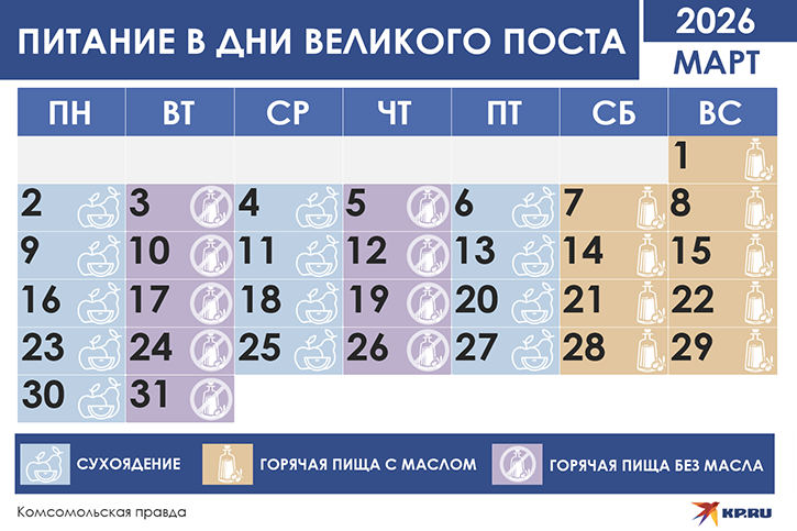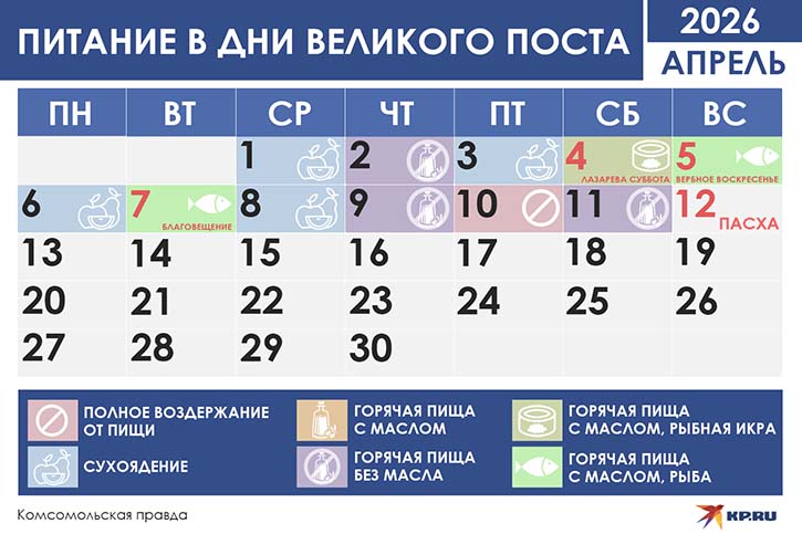 Великий пост — самый строгий. В 2025 году он начинается в понедельник, 3 марта, и заканчивается в субботу, 19 апреля. Семь недель, до самой Пасхи, верующим рекомендовано воздерживаться от пищи, содержащей мясо, рыбу, молоко и яйца. Исключение составляют маленькие дети, беременные женщины, люди, которые болеют или занятые на тяжелой работе (сюда же часто относят путешественников в непростых условиях).