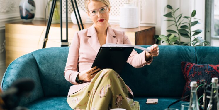 «Я доверилась команде сценаристов и была, честно говоря, приятно удивлена. Обычно я переписываю реплики, подгоняю их под себя, а здесь ребята прекрасно справились. Очень точно передали и характер, и интонацию, – делится Ксения Собчак и добавляет свои рекомендации для начинающих журналистов. – Во-первых, придумайте какой-то интересный формат. Во-вторых, не выбирайте темы, которые сто раз обсудили. Старайтесь говорить о чем-то, что не связано напрямую с творческой деятельностью героя, это может стать ключом. А третье – обязательно смотрите источники с небольшим охватом, не федеральные СМИ, ищите там, где никто обычно не копает, там можно найти невероятные перлы».