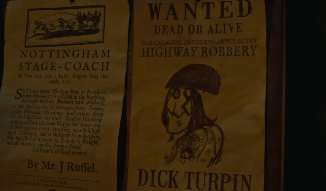 - Дик Турпин — реальная личность, о которой в Англии ходят легенды. Он разбойник и вор, которому всякий раз удавалось скрыться от погони и даже пули, однако удачливым аферистом его назвать сложно из-за постоянных проблем на преступном поприще.