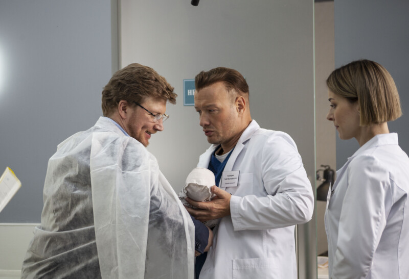 «Мне кажется, мой герой не похож ни на одного другого персонажа, которого я когда-либо играл. Каверин настоящий эгоцентрик, со своими странностями, очень своеобразный, я бы даже сказал, уникальный. Он прекрасно знает, что делает и для чего, никого не слушает, действует только так, как ему комфортно, чем раздражает всех вокруг. Мне, как актеру, было интересно наблюдать за его внутренними изменениями по ходу сюжета. Конечно, на площадке у нас работали медицинские консультанты. Я научился правильно держать скальпель и зажим, шить одной рукой, узнал, кто где должен стоять во время операции, там, оказывается, такая иерархия, целый огромный мир. Самой большой похвалой для меня было, когда после одной из сцен эксперт сказал: «Вот сейчас было похоже»», — Никита Панфилов, актер