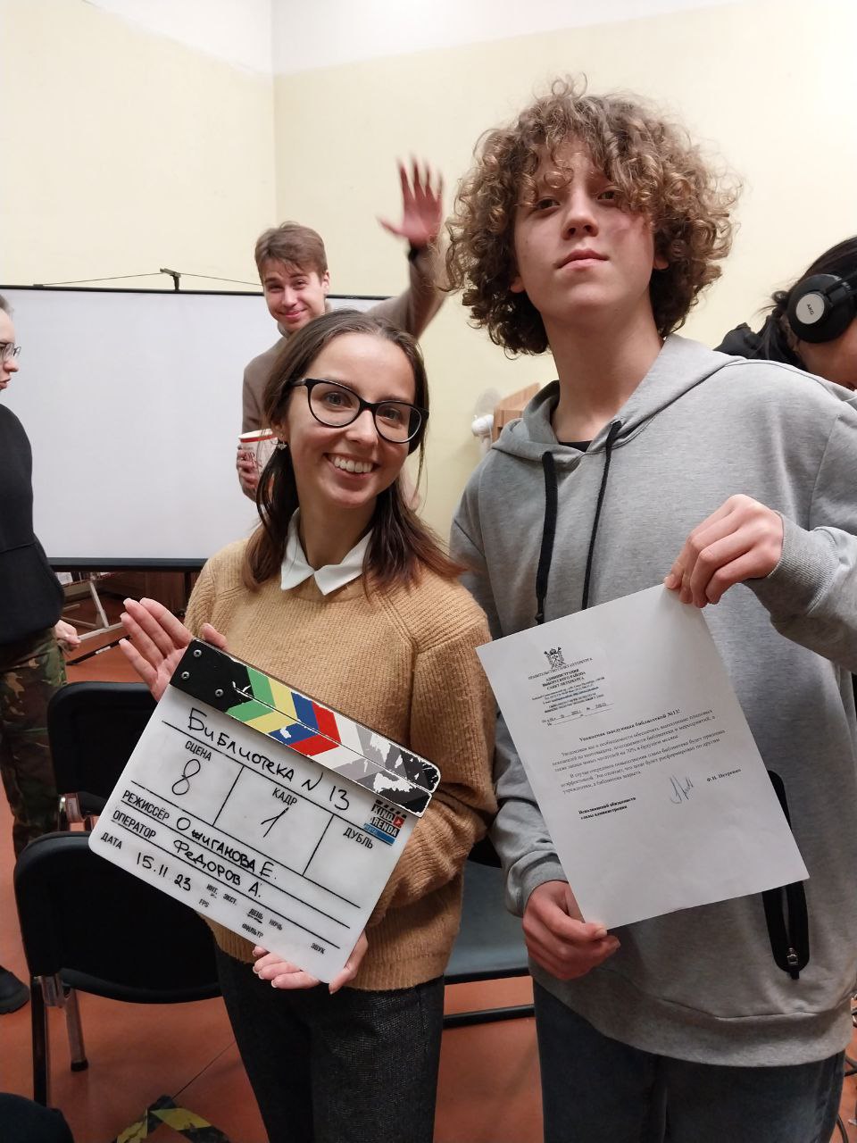 - Режиссер и сценарист проекта — Елена Ожиганова. Это ее дебютный проект. Она занимает должность специалиста по информационно-аналитической и организационно-административной деятельности ЦБС (Централизованная библиотечная система) Выборгского района.