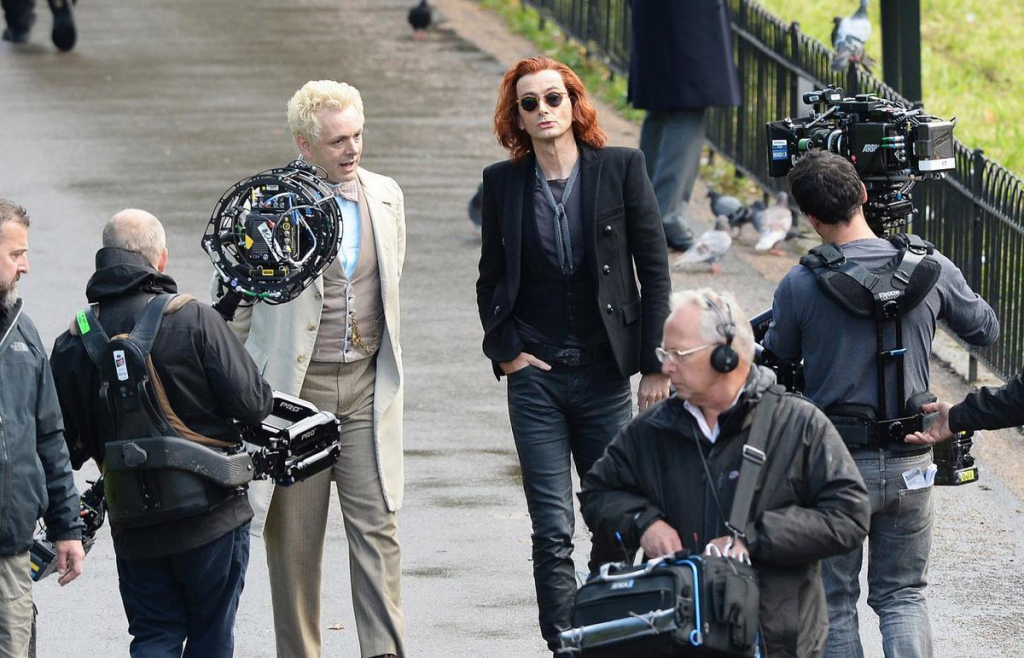 Съемки в Лондоне уже начались в 2017 году. Появились даже первое фото с этих съемок, на котором позируют актеры Майкл Шин (в образе ангела Азирафеля) и Дэвид Теннант (в образе демона Кроули).