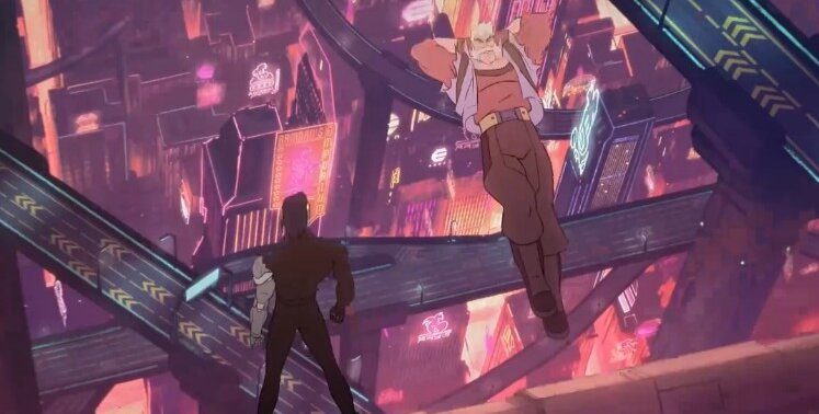 Captain Laserhawk: A Blood Dragon Remix 1 сезон — американо-канадский фантастический аниме-сериал. Действие сериала происходит в альтернативном мире, где наука развивалась иначе, и уже в 1950-х годах автоматизированная техника распространилась на совершенно ином уровне. Как итог, компания «Эден» обеспечивает население планеты базовым доходом для последующего наблюдения за ним и контроля. Главный герой, кибернетический суперсолдат, сбежал от армии «Эдена» и теперь надеется провернуть последнее нападение на бывшего работодателя прежде чем скрыться в закате на пути к лучшей жизни.