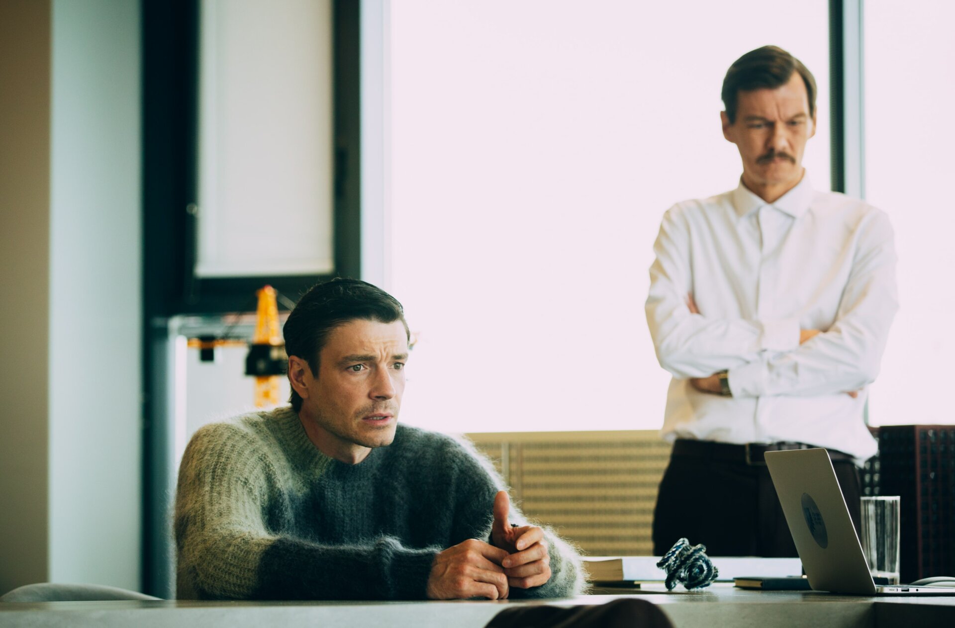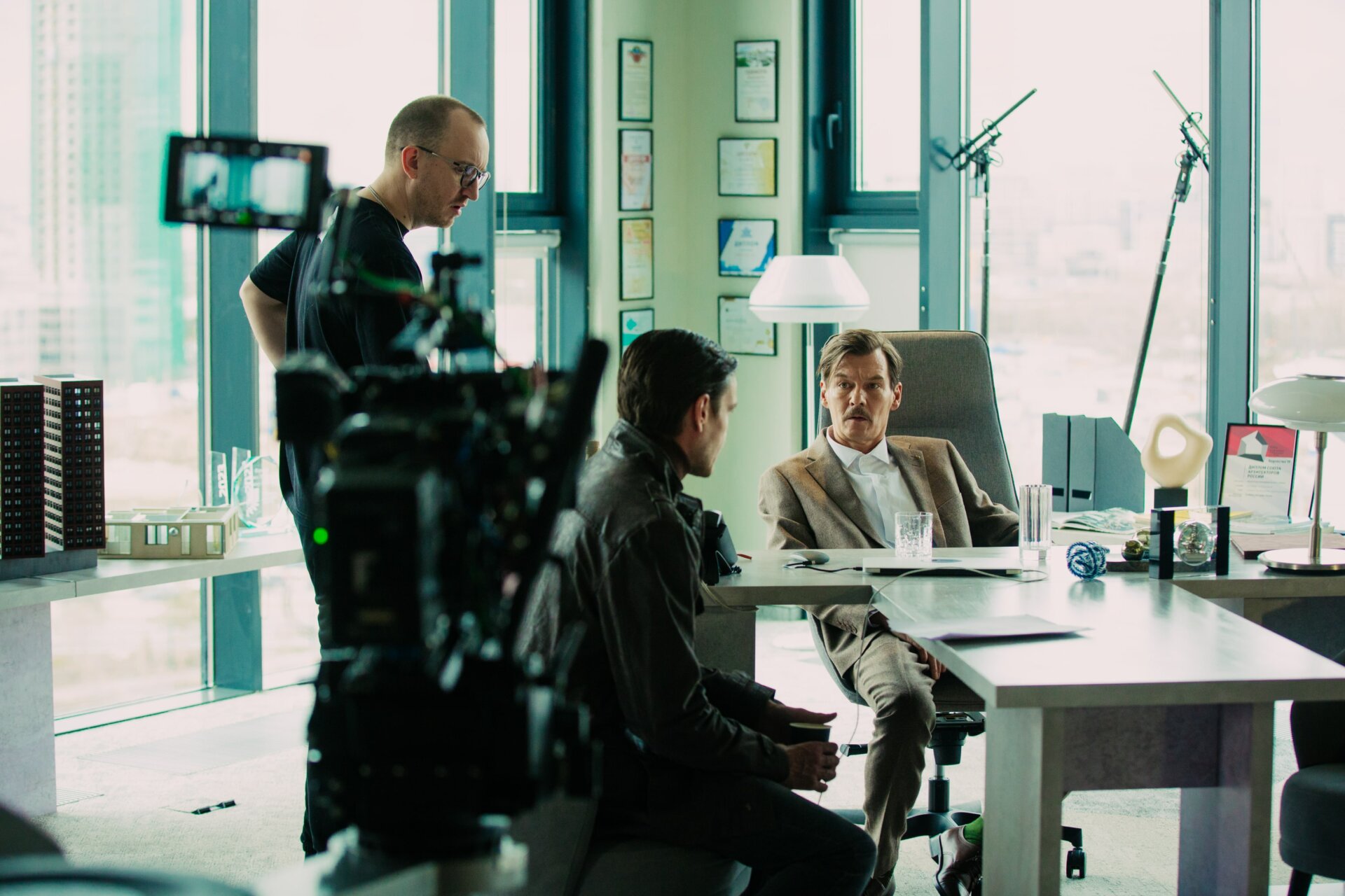 «Мне еще не доводилось играть в одном проекте две роли сразу. Этот опыт любопытен не только для меня как для исполнителя, а вообще для всей команды: и для творческой группы, и для режиссера, и для оператора, и для художников — в общем, задача интересная и амбициозная для всех. Еще до выхода на площадку мне необходимо было досконально подготовиться к этим двум персонажам — понимать, кто они, как они двигаются, что отличает их друг от друга, на каких психологических подоплеках их особенности завязаны, как они проявляют разные эмоции и так далее. Поэтому я составил для себя график двух ролей (это практика, которой я пользуюсь постоянно): для каждого персонажа и к каждой сцене я придумал и прописал свои черты, свои способы поведения и реакции на те или иные события. И вот только с такой готовой палитрой к каждой из ролей я вышел на площадку, и сейчас вместе с командой мы воплощаем все это в жизнь».