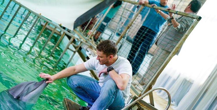 Актеры научились на съемках обращаться с дельфинами. Например узнали, что аккуратно нужно прикасаться к их ушам и глазам, иначе можно напугать животное.