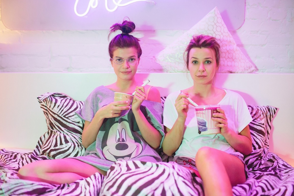«Ксюша отлично знает, что такое виски сауэр, коктейль «Маргарита» или текила бум, поэтому перед съемками я наблюдала за людьми в баре, как меняется их жестикуляция, в зависимости от степени опьянения и выбора напитка. Кроме того, для каждой из героинь я всегда подбираю разные жесты. И, кстати, кое-что Ксюша одолжила у Майли Сайрус. А нетрезвое состояние передать не так сложно: например, через глубину дыхания, смещение фокуса внимания, а еще можно икать, путать слова».
