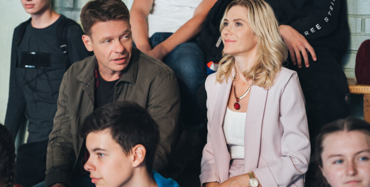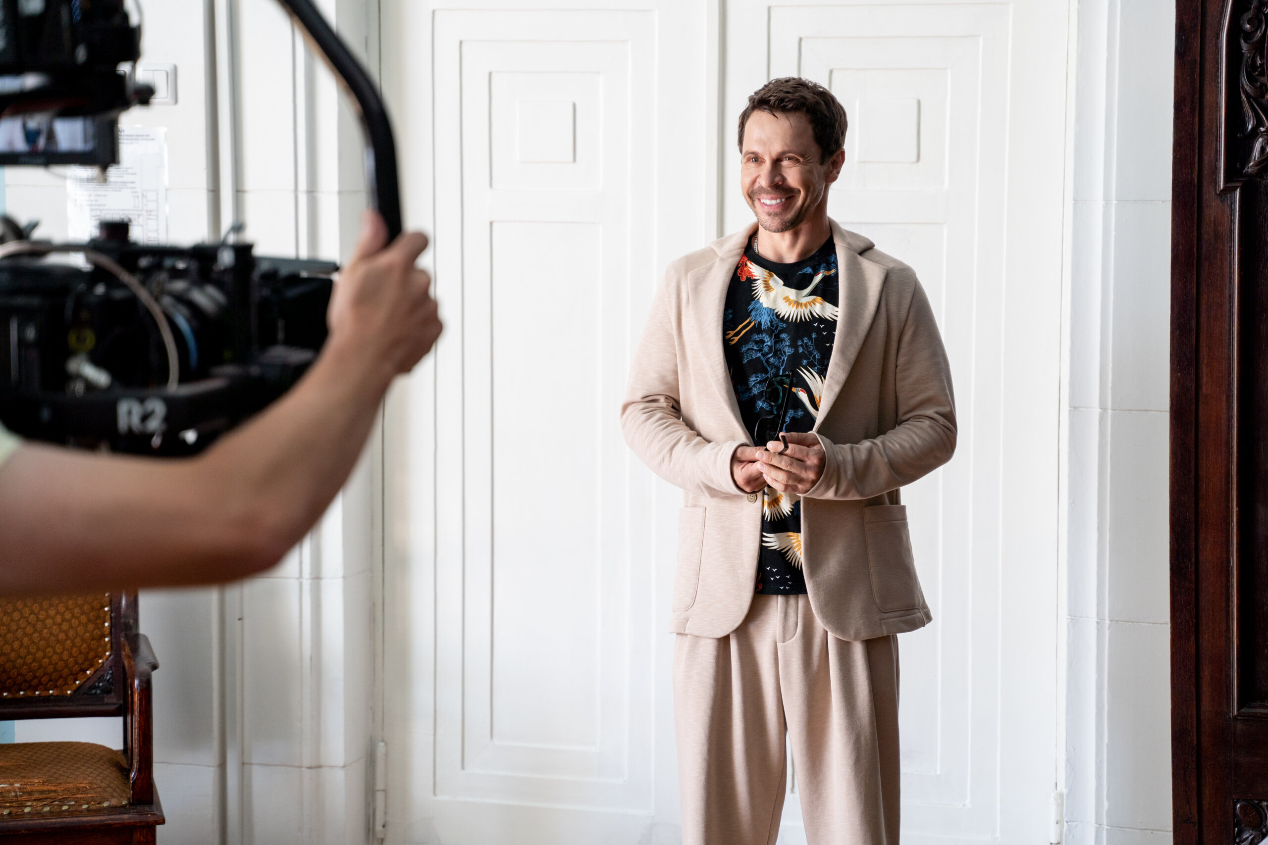 - Кстати, в сериал постоянно наведываются звездные гости. Например, в одном из эпизодов, чтобы найти общий язык с девушками, Михаил приглашает их любимого артиста — Сергея Лазарева. А пока финалист «Евровидения» поёт под гитару свой хит «Шёпотом», волейболистки не теряются и делают с ним селфи. На съемках этой сцены музыкант вспоминал, что когда-то и сам бегал за звездами с просьбой сфотографироваться.
