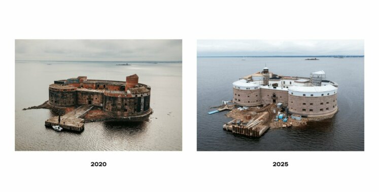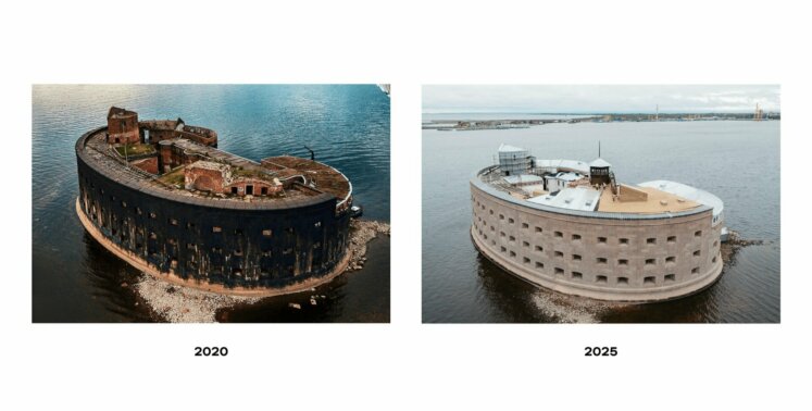 - Форту возвращен исторический вид, проделана огромная работа по возвращению исторического облика. Кронштадтские форты «Император Александр Первый» и «Кроншлот» включены в список ЮНЕСКО.
