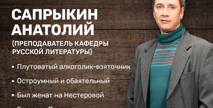 «В сериале «Год культуры» собралось целое созвездие фантастических артистов – именно они и «сделали» моего персонажа Сычева. О каждом из них можно говорить бесконечно. Комедийный талант Марии Ахметзяновой, сыгравшей неравнодушную преподавательницу Софью Белозерову, для меня стал большим открытием, она великолепная характерная актриса. Великий артист Александр Лыков, прекрасный и неповторимый Саша Яценко… Наверное, надо быть слепым и глухим, чтобы не создать интересного персонажа в такой роскошной компании».