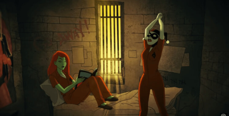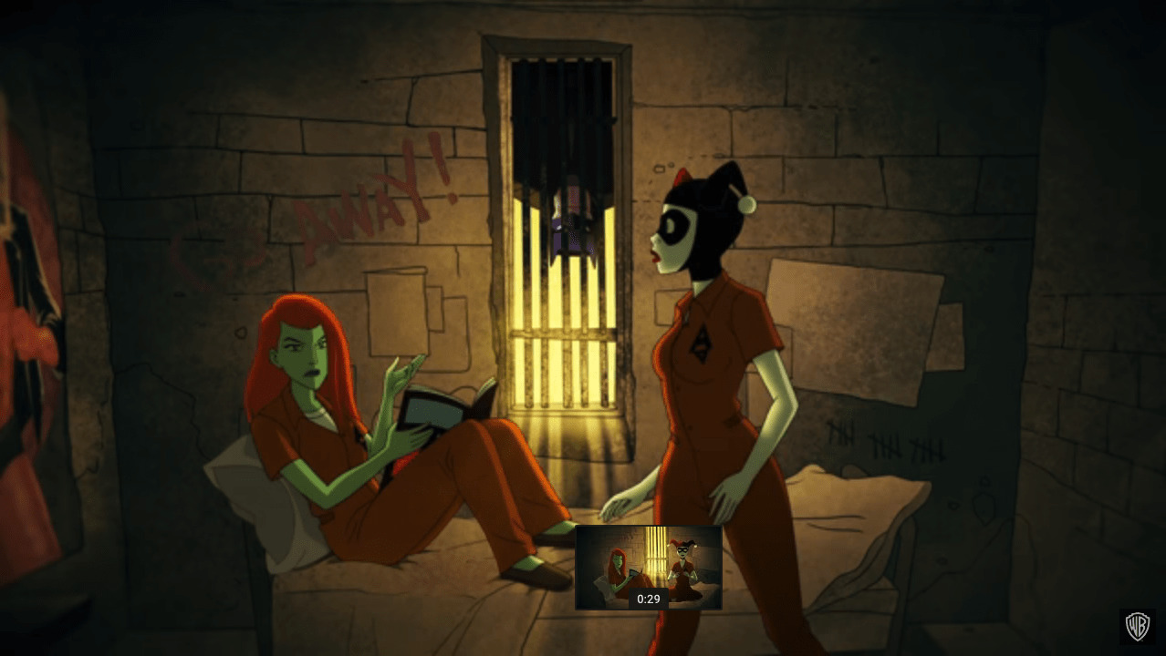 Вместе с другой злодейкой Ядовитым Плющом Харли изнывает от скуки и бессилия в тюремной камере. Чтобы подколоть злодейскую парочку, в камеру заглядывает Бэтмен, чтобы сообщить, что он не будет серой мышкой на фоне Харли и испортит ей веселье. Ядовитый Плюще тоже намекает, что неизвестно, кто будет смеяться последним — создатели сериала или зрители — ведь у DC вес получается мрачно и печально. Впрочем, как и «всё у DC».