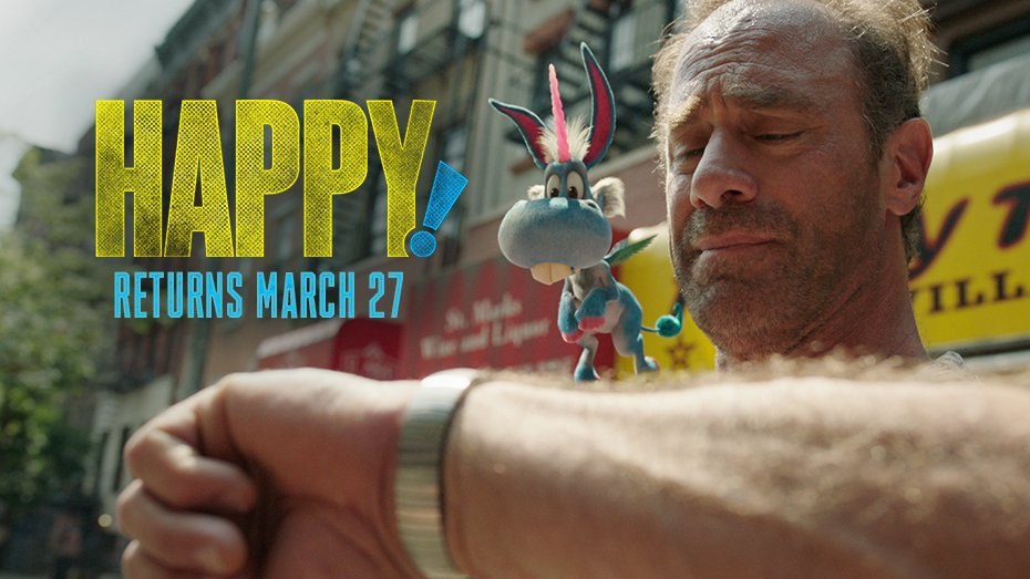 Хэппи 2 сезон — американский телесериал в жанре комедийного фэнтези-боевика. Первый сезон вышел в 2017 году на телеканале Syfy.