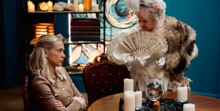 - Для оформления магического салона использовали 350 коробок с эзотерическим реквизитом, включая свечи, кристаллы, амулеты и бутафорские книги.