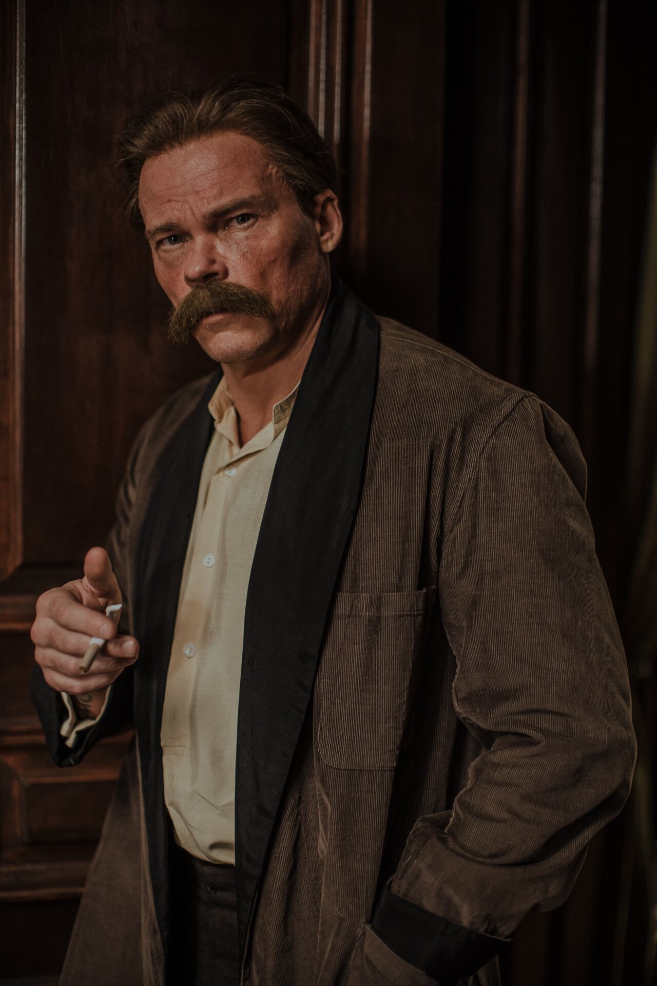 «Моего персонажа зовут Михаил Прохоров. Он офицер, служит стране, живет ради страны. Что для него страна? Даже не знаю, смог бы он сам себе ответить на этот вопрос. Наверное, это люди вокруг. Когда мир, в котором он вырос и сформировался, начинает рушиться, одновременно рушится и его внутренний мир, потому что они тесно взаимосвязаны. И мой герой абсолютно не понимает, что ему со всем этим делать. «Хроники русской революции» — самый длинный проект в моей жизни. Я очень переживал браться за него, потому что не понимал, как можно удержать все это в голове одновременно. Но потом мы встретились с Андреем Сергеевичем, я ему говорю: «Я не знаю, как это возможно сделать!«. А он в ответ смеется: «Я и сам не знаю, потому и делаю». И мы отправились в это крутое путешествие вместе.