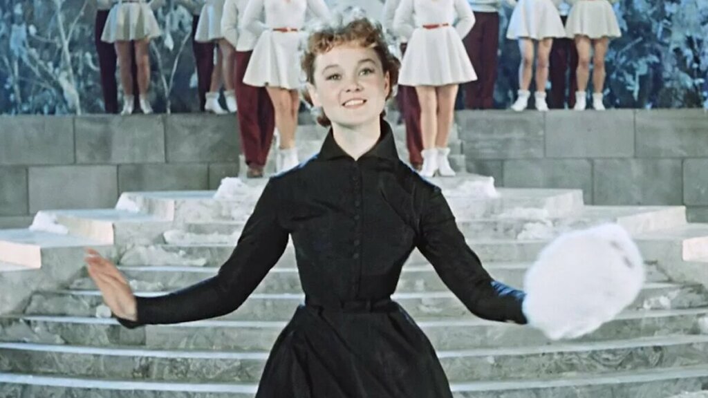 Есть еще один важный элемент Нового года, который почти 70 лет с уважением вспоминают и эстрадные артисты, и зрители, сидящие за новогодним столом, — песня Леночки Крыловой «Пять минут» в исполнении Людмилы Гурченко. Кстати, забавный факт: многие люди, напевая припев песни, поют «Пять минут — это много или мало». Но такой строчки в песне нет. Этот феномен называется «Эффект Манделы» — когда группа людей уверена в событии или факте, которого на самом деле не было. А следом на январских праздниках показывают еще один шедевр советской комедии — «Любовь и голуби», где Людмила Гурченко сыграла разлучницу Раису Захаровну.