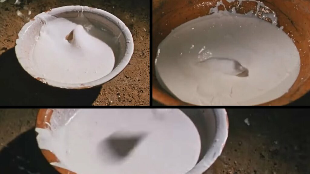 Знаменитый момент с поеданием вареников снимался, как для всех уже очевидно, путем обратной перемотки. Забавная ситуация перетянула внимание на себя, поэтому некоторые могли не заметить, что вареник упал в миску, по самые края измазанную сметаной. Но пока он там крутился, миска почему-то стала чуть более чистой. А выскакивает снова из запачканной.
