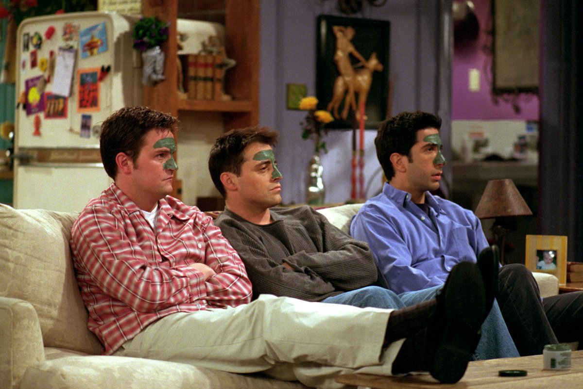 9. Чендлер высмеивал Джои за вязание, а Росса за макияж, а не за типичные «мужские» занятия.