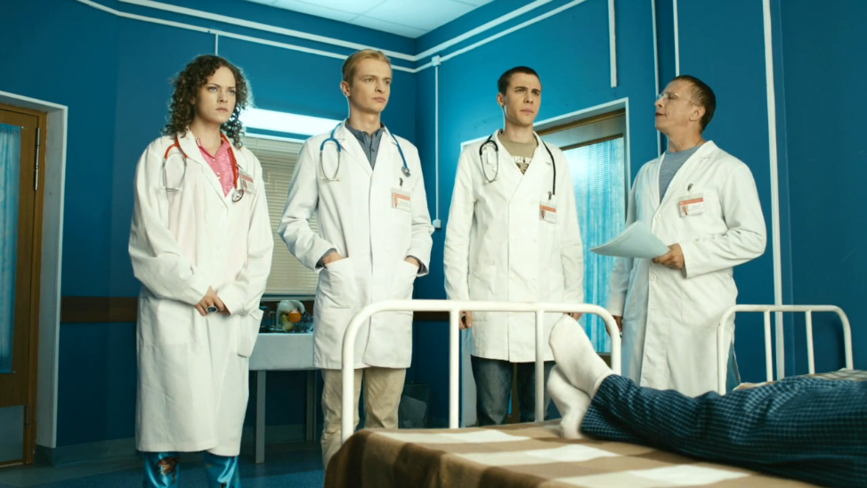 Кстати, от других ситкомов на нашем телевидении «Интерны» в первую очередь отличаются тем, что это первый юмористический российский сериал, который снят по законам полнометражного кино. К тому же вы не услышите традиционный закадровый смех.