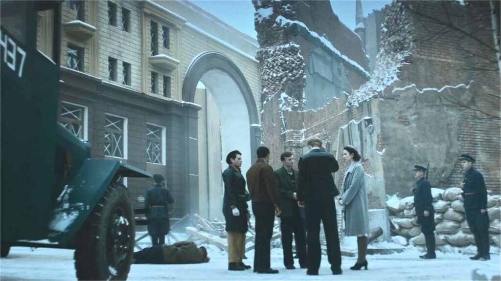 — Тут я хочу выразить огромную искреннюю благодарность кинопарку Москино. Декорации, выстроенные там – это произведение искусства. И Москва в 1941 году выглядела реально так, мы максимально старались приблизиться к тому, как город выглядел в то время: изучали фотографии и даже подбирали цветовую гамму зданий в соответствии с оригиналами. Кроме того, мы нашли и использовали исторический факт, связанный с героический обороной столицы и художником Борисом Иоффе. Он, можно сказать, спас Москву, придумав раскрашивать город в разные тона, рисуя прямо на асфальте дома и заводы, делая их разноцветными: оранжевыми, красными, зелеными, синими. Всё это, плюс светомаскировка, создавало необходимый эффект и способствовало практически полной дезориентации противника. Когда немцы совершали свои авианалёты, они не могли распознать, где конкретно в Москве находятся её ключевые здания и важнейшие промышленные объекты. И мы использовали этот момент для красочной картинки проекта, ничего не выдумывая и не искажая.