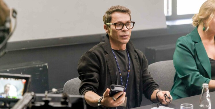 «Непривычно играть героя с моим именем. Ведь это не совсем я, поэтому сначала даже запутался. Но потом решил, что покажу иронично обобщённый образ артиста и буду с нескольких знакомых актеров снимать по чуть-чуть разные особенности: и речевые, и поведенческие. И конечно, героя ждёт трансформация: он очеловечивается, сходят с него ненужная шелуха и московский флер».