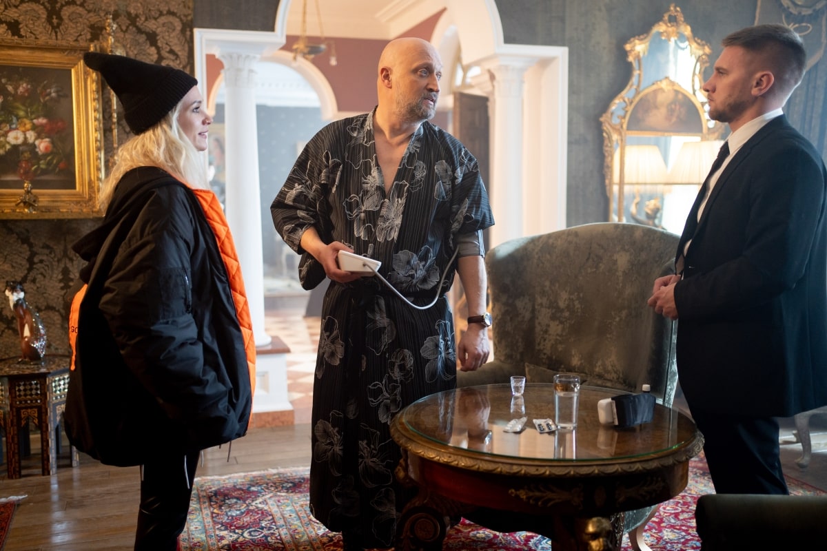 Первый съёмочный день Алёна Бабенко провела в компании своего питомца, шпица Беллы, на территории подмосковной усадьбы Середниково, куда по сюжету старшеклассники отправились по просьбе мэра.