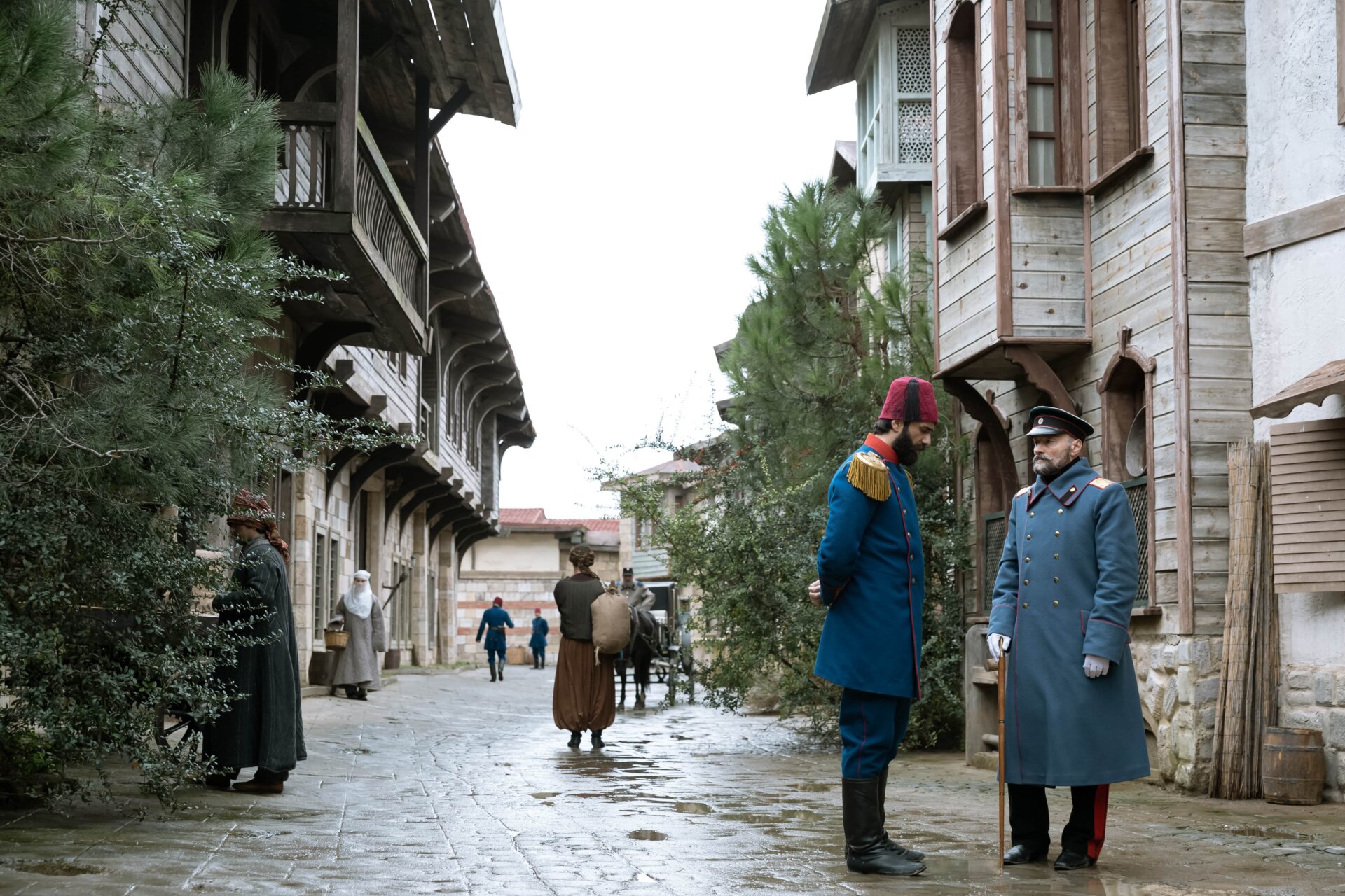Компанию российским актерам на съемочной площадке составили турецкие актеры: звезда сериалов «Клятва» и «Моя дорогая мама» Айсун Гювен, исполнитель одной из главных ролей в турецком хите «Моя левая половинка» Толга Менди и другие.