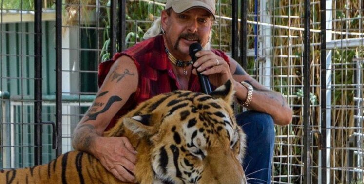 Джо Экзотик — псевдоним, который взял себе Джозеф Мальдонадо-Пассаж, укротитель тигров, кантри-певец, ведущий шоу на YouTube, владелец частного зоопарка Greater Wynnewood (GW Zoo) в Оклахоме с тиграми, львами и другими экзотическими животными. В 2018 году он был приговорен к 22 годам заключения за подделку документов для незаконной продажи тигрят, убийство пяти тигров и попытку заказного убийства соперницы Кэрол Баскин. В марте 2020 года Netflix выпустил документальный сериал, посвященный Джо Экзотику.
