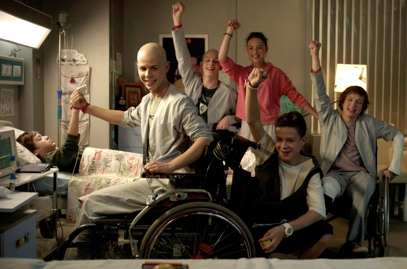 Олег, 14-летний подросток, решает переломить ситуацию, не дать болезни победить их, доказать, что страшный диагноз это еще не приговор. Он объединяет вокруг себя компанию друзей, и каждый из них надевает на руку красный браслет. После этого их жизнь меняется на глазах: «браслеты» затевают разные игры, авантюры, игры и праздники, помогают друг другу выдержать нелегкие процедуры, и даже во время операций стараются быть рядом. Все ребята, кроме ходячей Кристины и Ромки, который не встает с постели, передвигаются по больнице на инвалидных креслах.