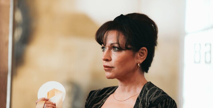 «Мы все помним малиновые пиджаки, лосины и огромные прически из эпохи перестройки — нам не нужны были референсы, чтобы погрузиться в этот мир. Моя героиня — глубокая и интересная женщина, она директор ДК и совершает совершенно революционный поступок для того времени — проводит первый конкурс красоты. Как и вся страна, она переживает турбулентность во всех смыслах: сложности, трансформации в семье и в обществе. Получается очень интересная кардиограмма роли — с успехами и провалами, радостями и тревогами. Это были сложные и интересные времена, которые отразились на судьбе моей героине».