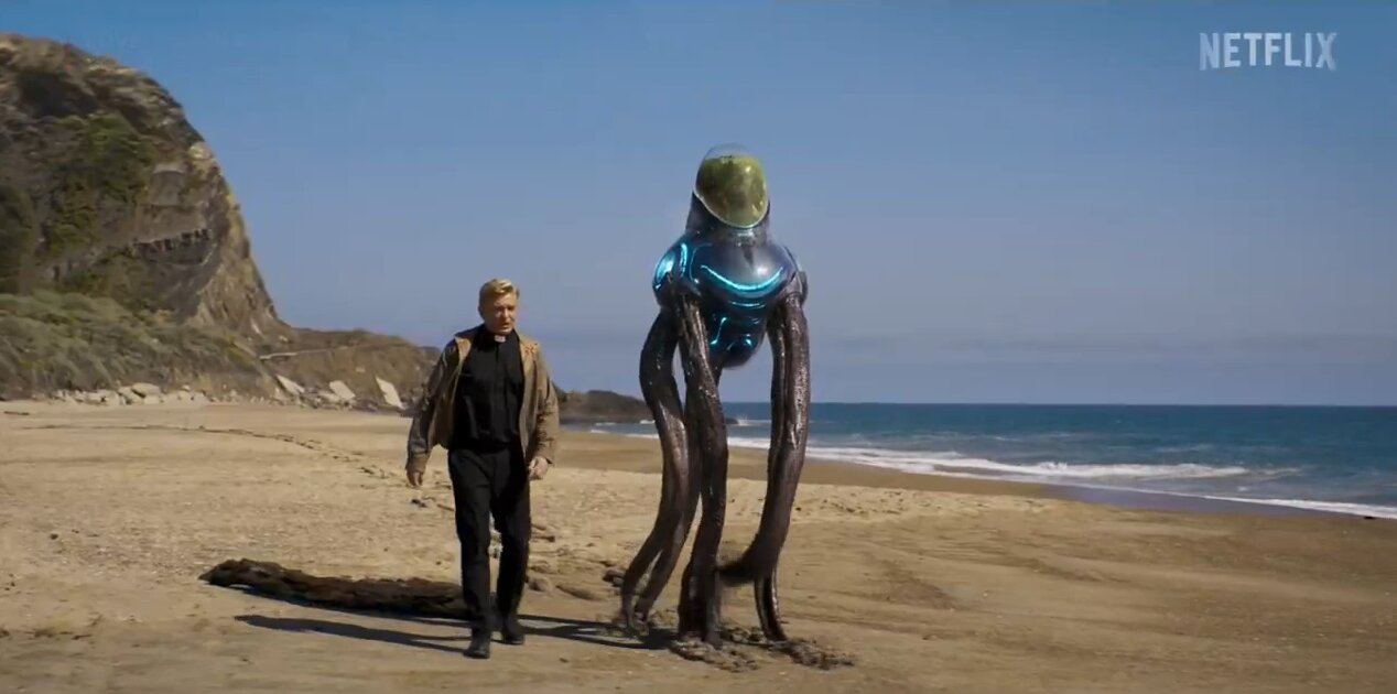 Гибридный эпизод с элементами игрового кино. Добросовестный викарий принимает инопланетного посланника. Его народ верит, что на Земле они должны переродиться дельфинами.