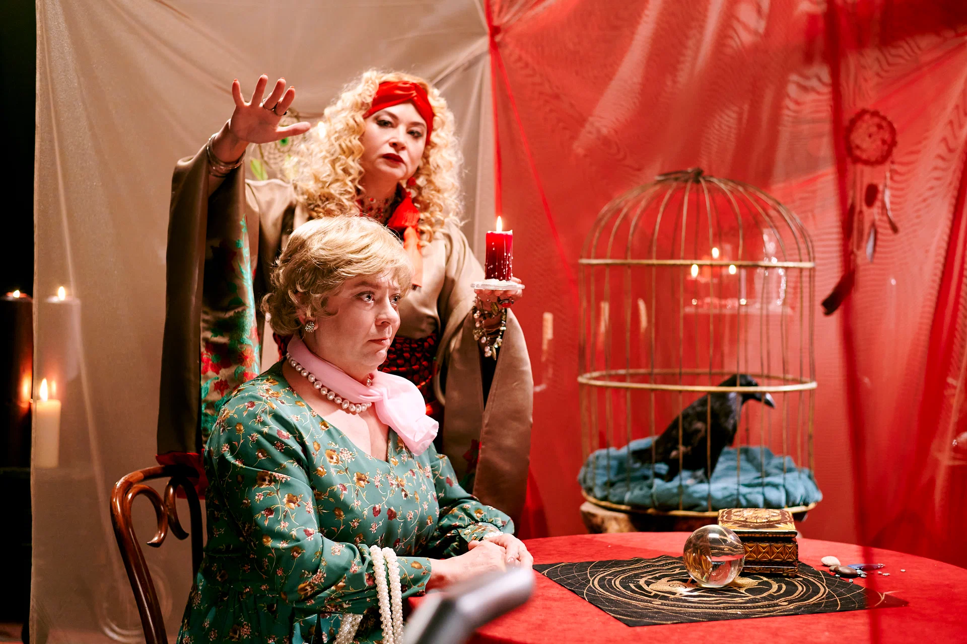 - Актеров ждали необычные преображения: Роман Постовалов примерит роль арабского шейха, Ксения Корнева облачится в сари, Дмитрий Брекоткин — перевоплотится в Елизавету II, а Сергей Ершов — в короля. Это одна из самых нагруженных сцен для костюмеров: только в массовке будет задействовано боле 300 человек. За основу взяли одно из королевских фото, сделав свою интерпретацию.