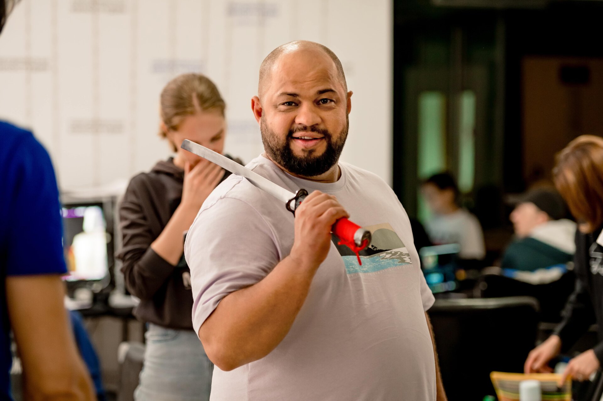 «Поролоновые грудь и попа, чулки каждый день. Мне кажется, я уже могу соревноваться на скорость их надевания. Ну и грим: после съёмок не мог его смыть до конца, поэтому возвращался домой с неким „налётом«. На меня пару раз так странно смотрели на заправках. А каблуки… Ужас, как женщины это делают! Я в шоке…».