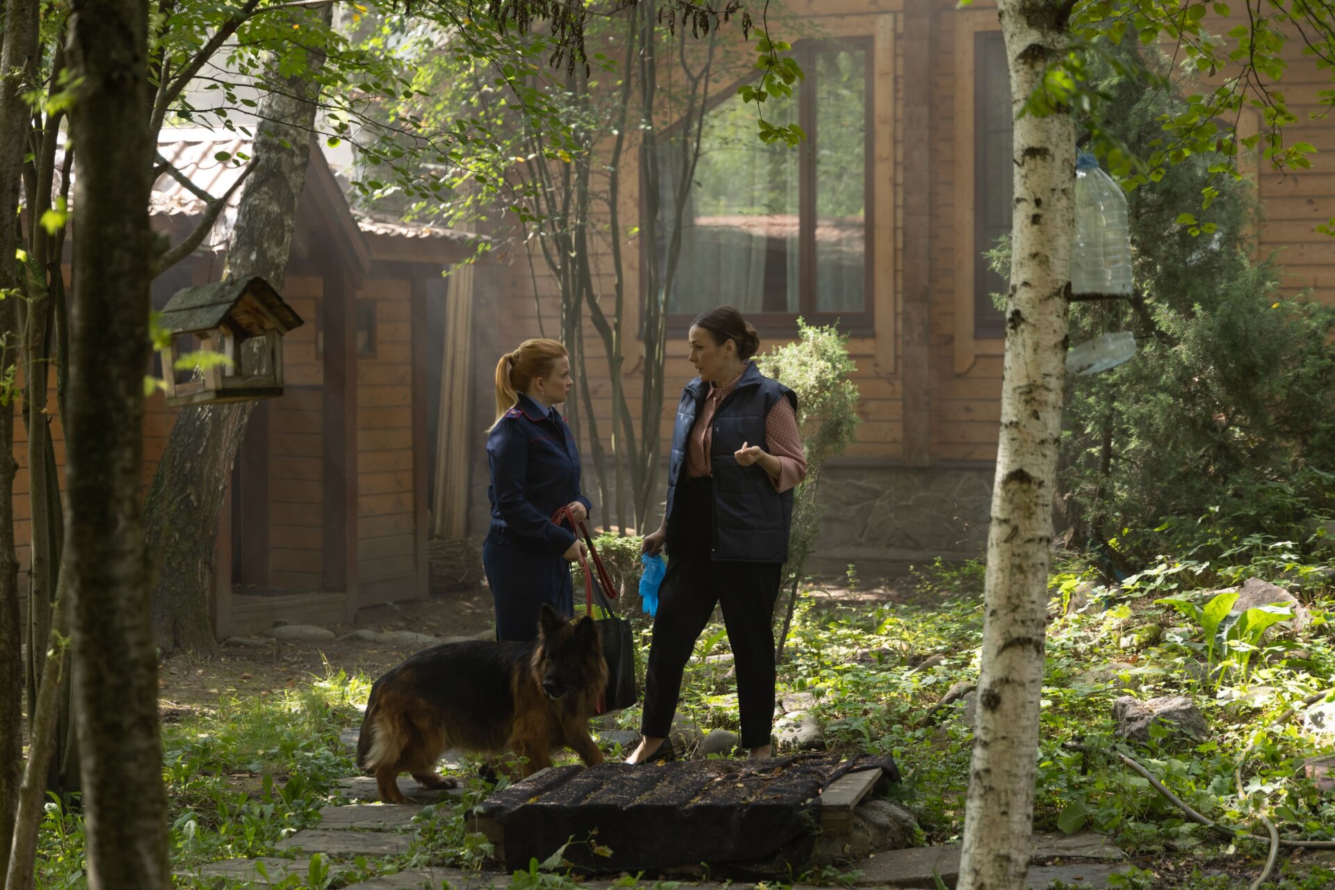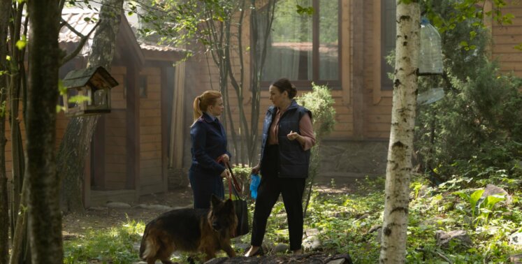 Екатерина Копанова, исполнительница роли Марины Пичугиной: «Это мой первый опыт такой насыщенной работы с собакой в кадре. Но у нас с ней все прекрасно получалось, как будто мы уже много лет снимаемся вместе. Однако Вера – так зовут ее в жизни – очень сильная. И, когда я держала ее за поводок, она иногда просто вытаскивала меня из кадра: собака же не может стоять и говорить текст, как я, ей куда нужно, туда она и пошла, и меня за собой потащила. Вера – добрая, умная и милая овчарка. Мне и моей героине Марине Пичугиной очень с ней повезло: Груня становится для Мани другом, членом семьи. И очень помогает в расследовании. Груня, как человек, все понимает, когда надо – лапкой потрогает. Это так мило!».