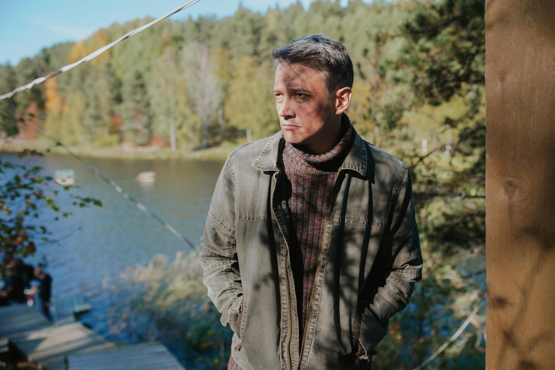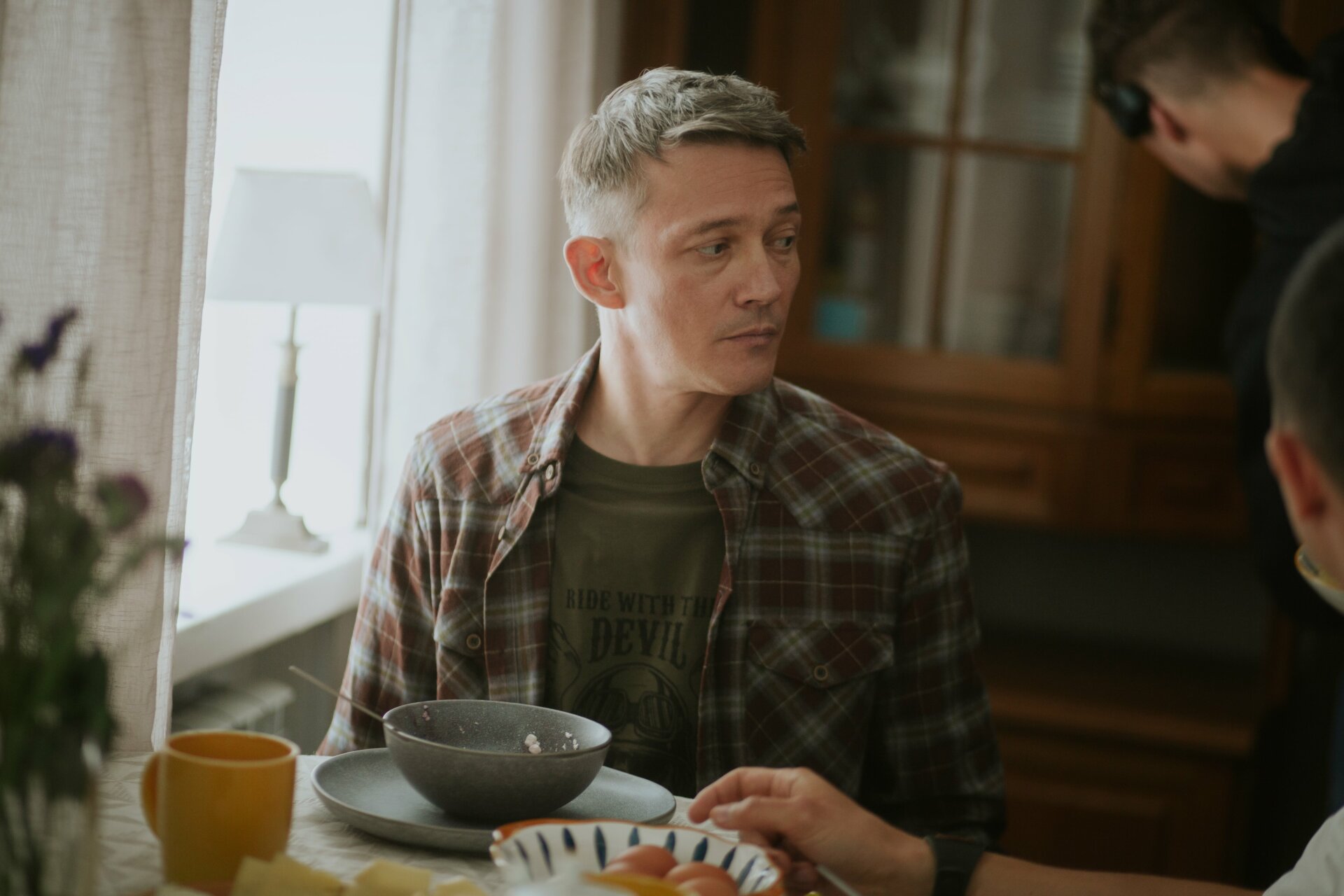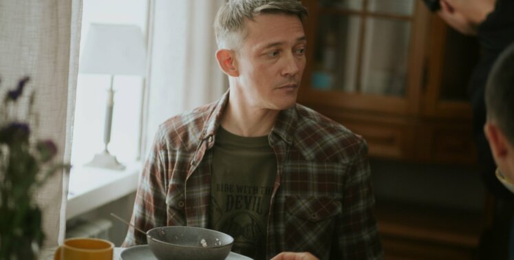 «Моему герою Егору 17 лет, но из-за жизненных обстоятельств и из-за заботы о брате, которому 5 лет и у которого ДЦП, он гораздо взрослее своего возраста. Мне повезло, что меня утвердили за несколько месяцев до съемок, у нас была очень плотная и большая подготовка. Егор занимается боксом, и поэтому я до съемок больше двух месяцев занимался боксом, абсолютно влюбился в этот вид спорта. У нас будет огромное количество спортивных сцен, а уже в первый день съемок я успел поплавать в холодном Ладожском озере. Нас окружает невероятная карельская природа, архитектура и какие-то очень душевные люди вокруг. Я чувствую, что мы все работаем над тем, чтобы у нас получилось что-то действительно настоящее, живое. Чтобы мы все смогли что-то понять про этих людей, и рассказать честную, не приукрашенную историю».