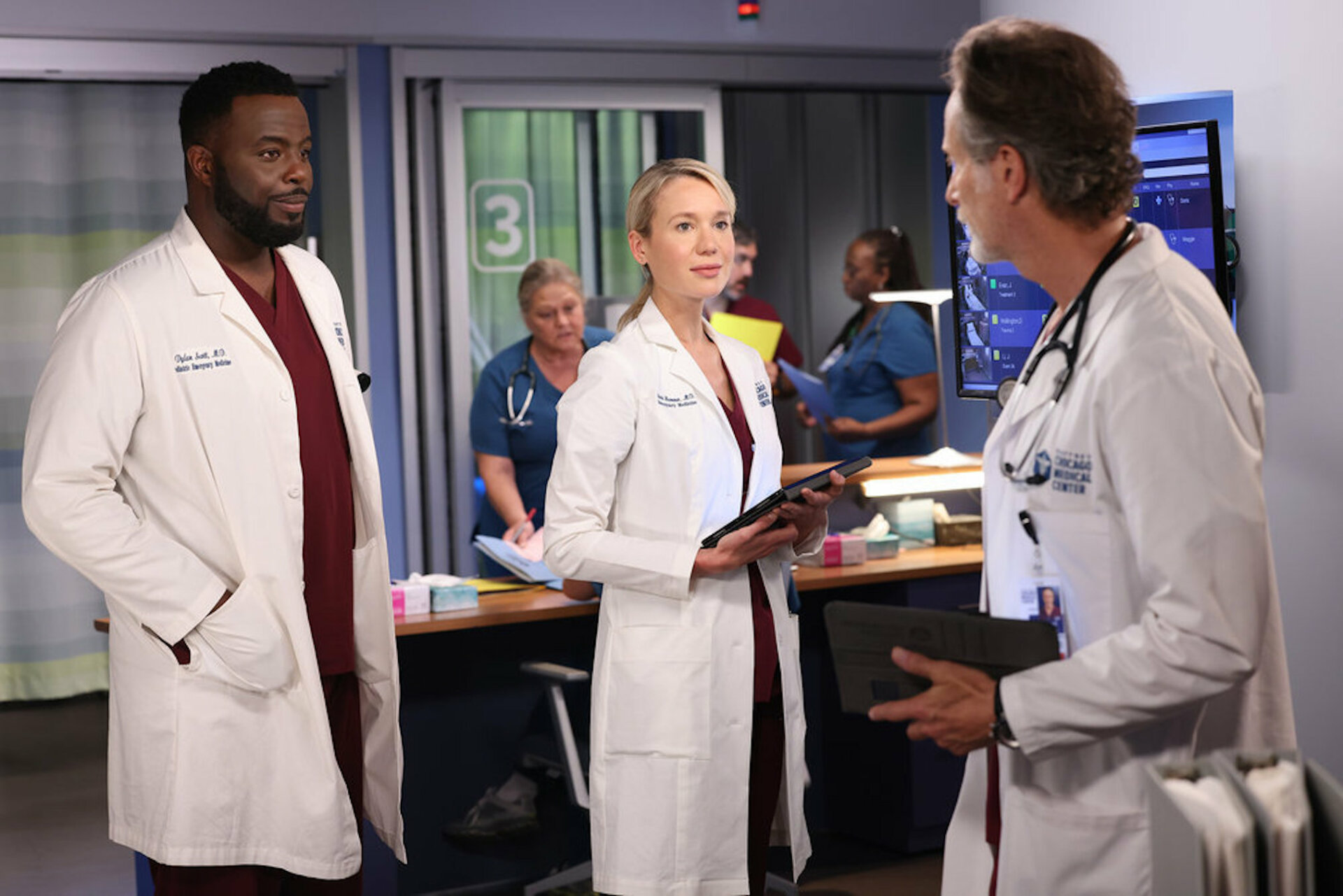 Один из главных героев — Ник Гелфусс — доктор Уилл Холстед, бывший пластический хирург, который теперь работает лечащим врачом в отделении скорой помощи. Он старший брат Джея Холстеда из сериала «Полиция Чикаго».