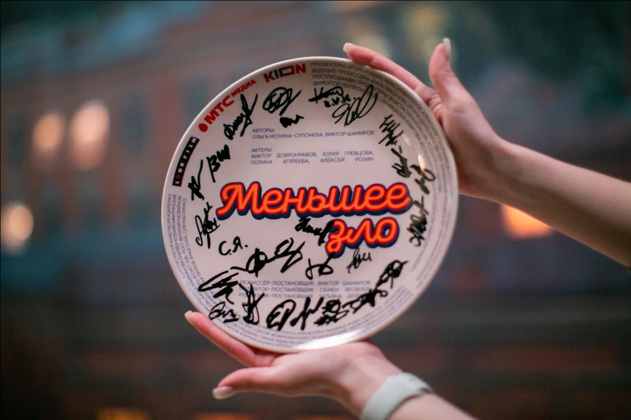 «Меньшее зло — экранизация пьесы в трех небольших сериях. Двое мужчин и двое женщин встречаются за ужином, за которым всплывает семейный секрет и ставит всех в очень неловкое положение. История о необходимости и невозможности правильного выбора» — Виктор Шамиров, режиссер