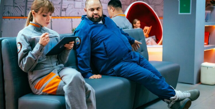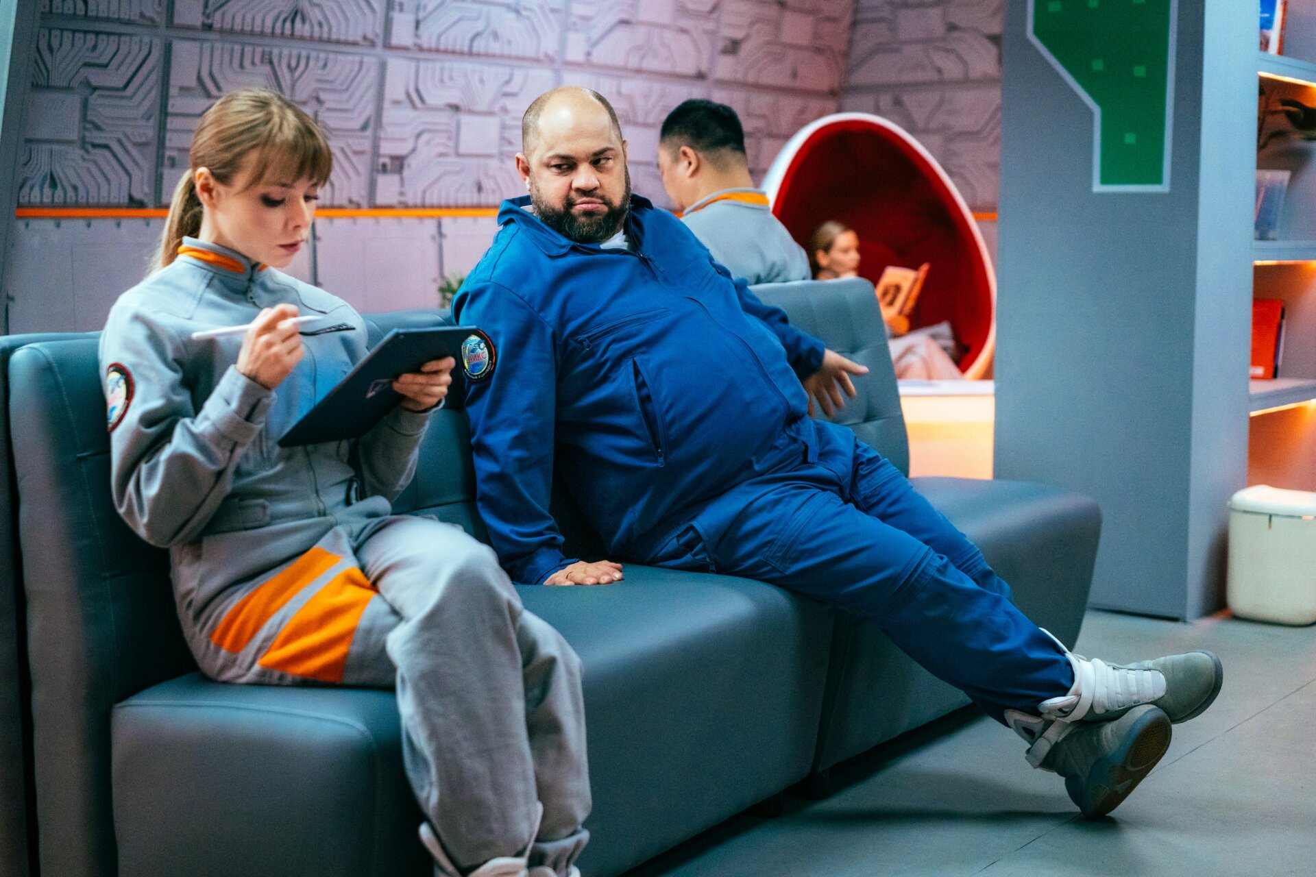 - Космодром построили в павильоне, в качестве общих кадров выбрали инновационный центр «Сколково». Декорации космического корабля расположились на 400 квадратных метрах с 11 подлокациями: каюты, лаборатории, спортзала, комнаты отдыха, капитанского мостика и другие.
