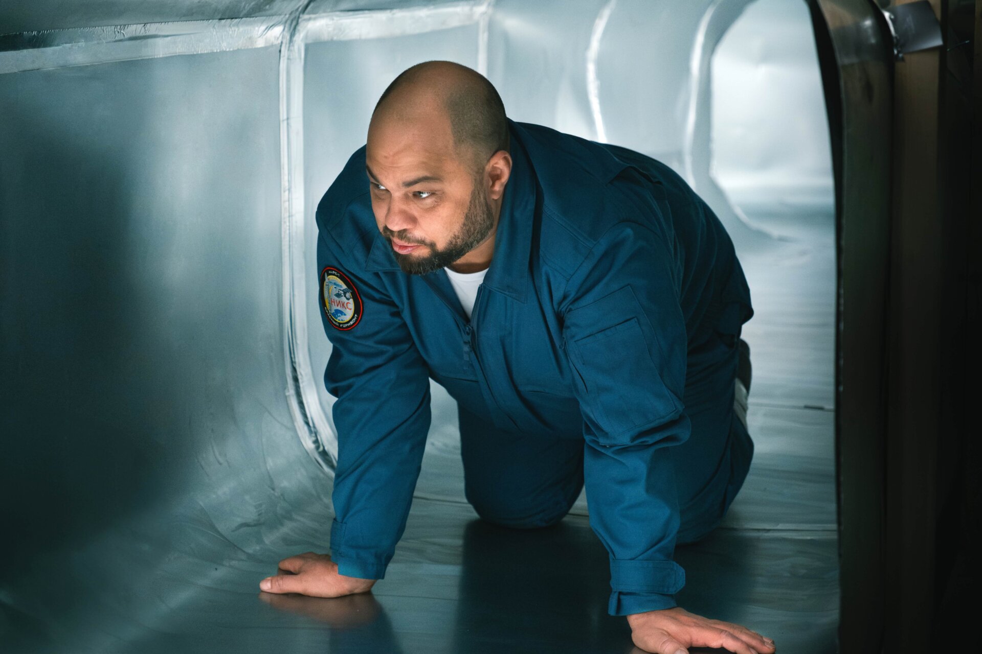 Митрич — обыкновенный электрик, который случайно попал на борт. Он может не только нарушить ход эксперимента, но и стать совсем нежелательным гостем на космодроме. И все это лишь потому, что участники наблюдения на самом деле находятся не в космосе, а в обычном павильоне, о чем не догадываются.