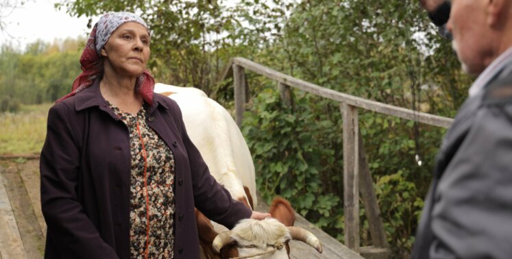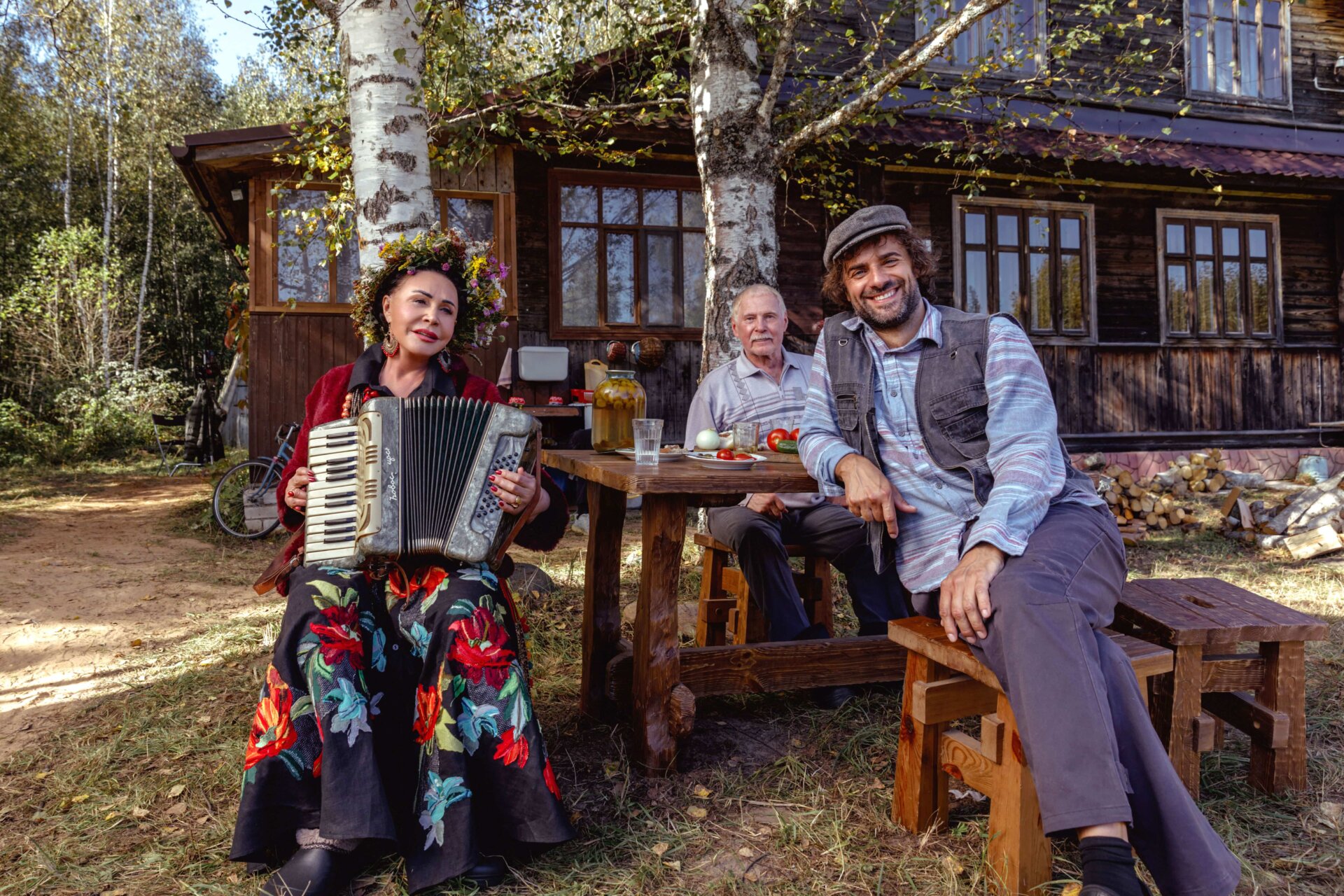«Работать с Ромой — одно удовольствие. Тем более, это моя мечта — шагнуть с театральной сцены на съемочную площадку. А уж когда я узнала, что моя героиня — простая деревенская женщина, счастью не было предела. Я сама из деревни, я знаю этих людей, поэтому в кадре старалась не играть, а просто жить. Съемки проходили в Тверской области в настоящей деревне и, более того, в настоящем жилом, а не выстроенном специально, доме. Хозяева дома приняли нашу компанию тепло и радушно, как близких родственников, все время были на площадке и за процессом наблюдали с гордостью и любопытством. Мне в кадре приходилось и навоз в тачке возить, и в огороде копаться… Но этим меня не напугать — работать руками я с малых лет приучена» — рассказывает о съемках Надежда Бабкина.