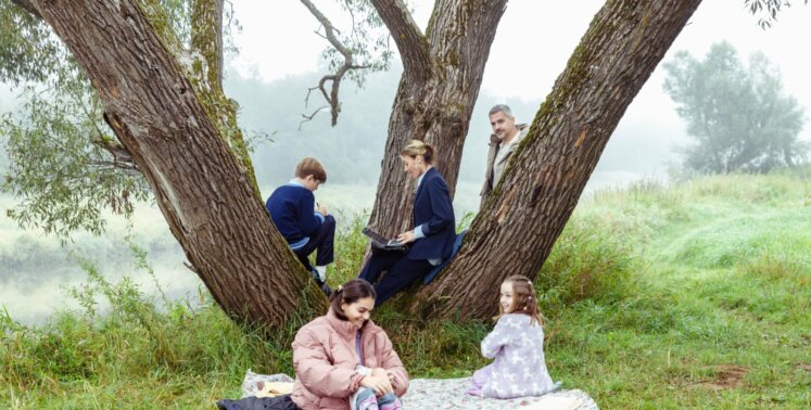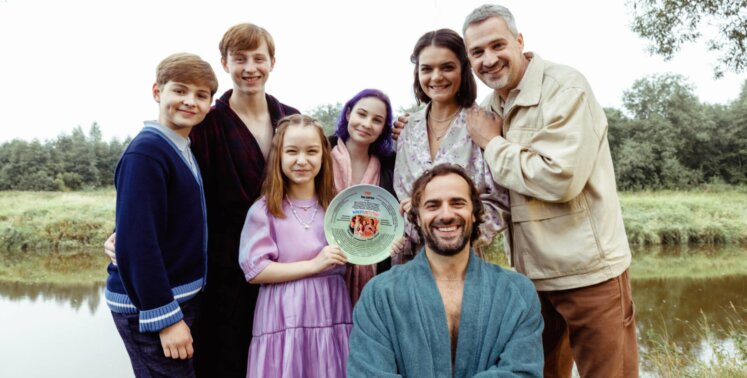 «Толстой сказал, что все счастливые семьи похожи друг на друга — а это не совсем так. Наша счастливая многодетная семья — особенная, и счастлива по-особенному, по-своему. Съемки проходили очень бодро, материала много, кастинг замечательный. Всегда здорово, когда в проекте участвуют актеры разных поколений. Старшие, в хорошем смысле, учат жизни младших, младшие учатся и немного иронизируют над старшими. Возникает такая семейная уютная атмосфера на площадке, у нас было как раз так, и это очень приятно» — режиссер проекта Роман Самгин.