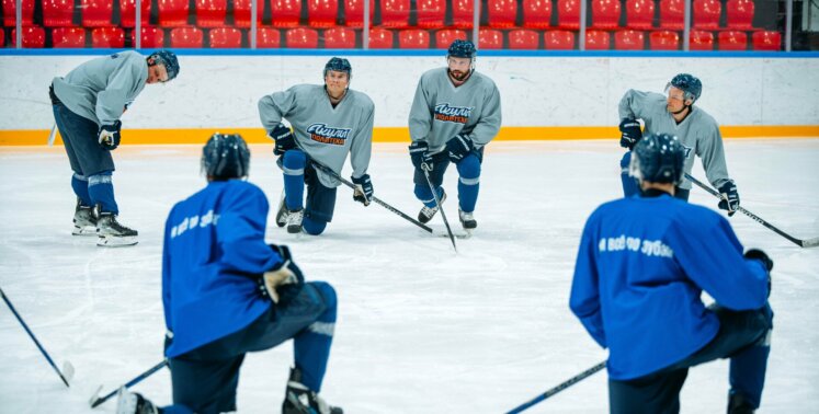 - На протяжении трех месяцев актеры посещали хоккейные тренировки три раза в неделю. Занятия проходили под руководством профессиональных хоккеистов.