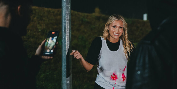 «Для меня это первая важная, серьезная работа в кино. Я ходила на пробы год, сильно переживала — у меня не было уверенности, что все получится. Очень благодарна режиссеру Ольге Долматовской, которая в меня поверила сразу. Наш «мэтч» случился еще на первых пробах — мы не были знакомы, но пришли в одинаковых толстовках и с похожими прическами. В работе тоже все совпало: она очень четко ставит задачи, объясняет, показывает. А Жора Крыжовников — легенда. Тонко чувствует личность, находит твои сильные черты и раскрывает их. Я полностью доверилась таким профессионалам, и каждый съемочный день вызывал у меня радость и азарт», — актриса Мария Камова.
