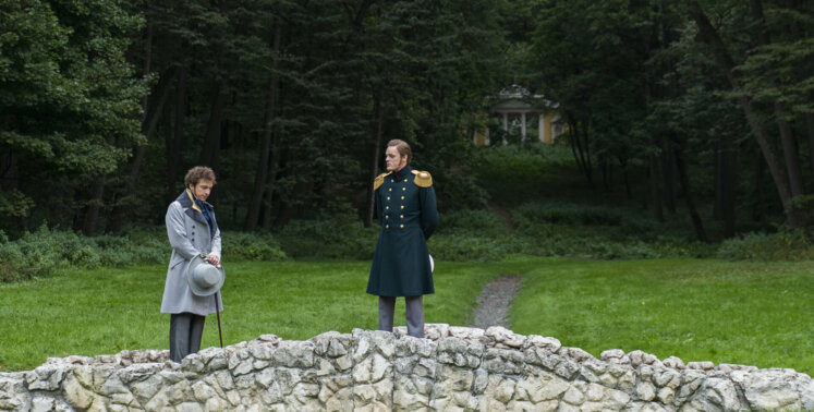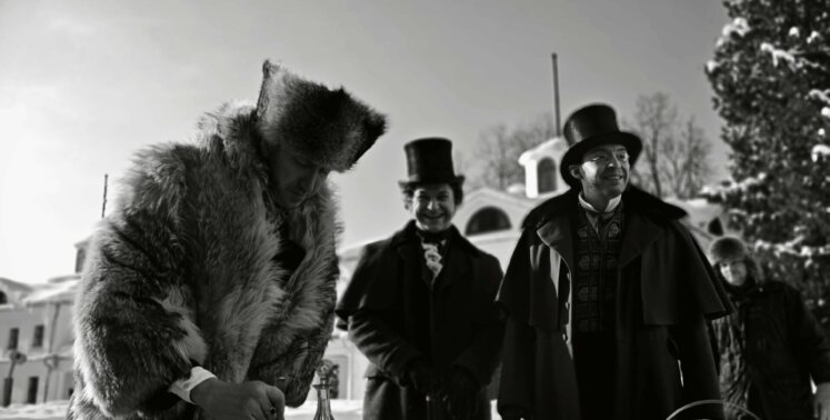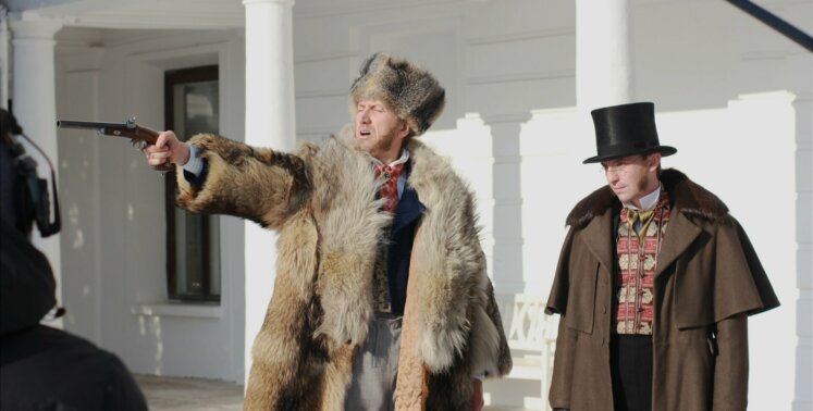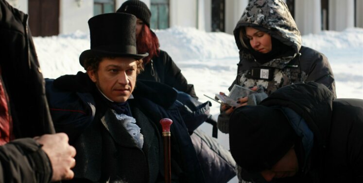 Костюмеры повторили знаменитый цилиндр, сюртуки и другие элементы одежды. Особенное внимание уделили рубашке Пушкина, которая хранится в музее Пушкина: на ней был гофрированный воротничок, который приходилось ежедневно стирать и перешивать.