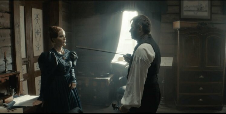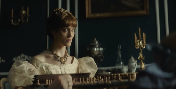 «Я считаю, что все это больше может раскрыть персонажа, оттенить и создать атмосферу вокруг него. Мария Нессерльроде – жесткая женщина. Я придумала, что основной цвет героини – сталь. Металл имеет свойства меняться: при накаливании может быть красным, затем белым. Так я и сделала в платьях. В начале сериала было платье стального цвета, потом бордовое, потом красное, а в финале уже была в белом», — поясняла Александра Ребенок.