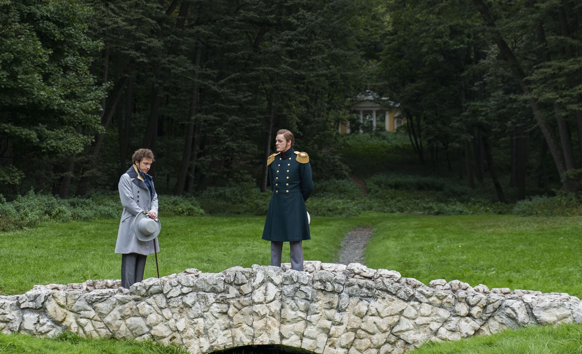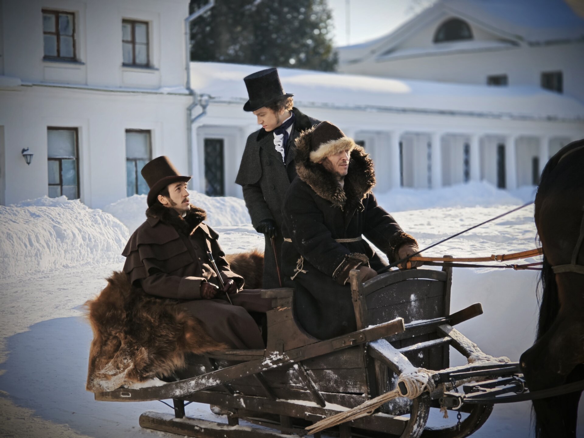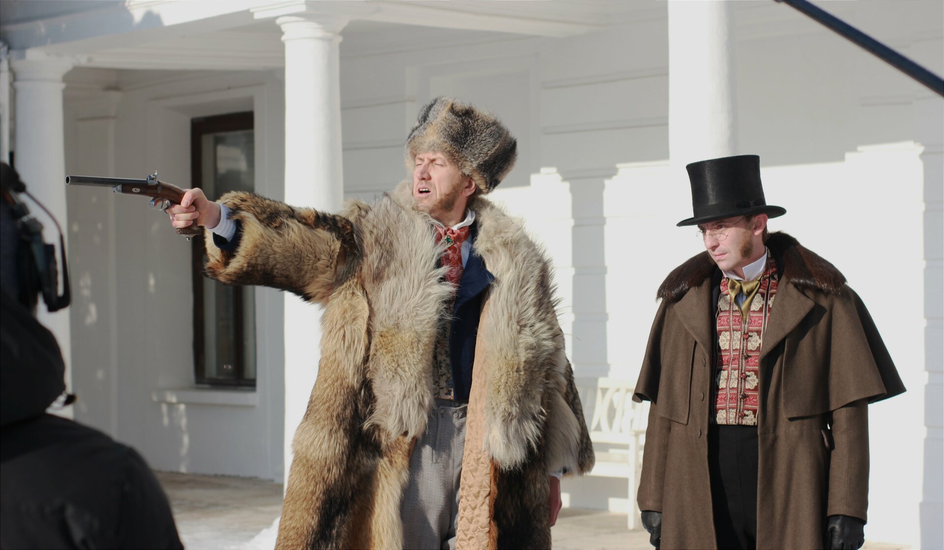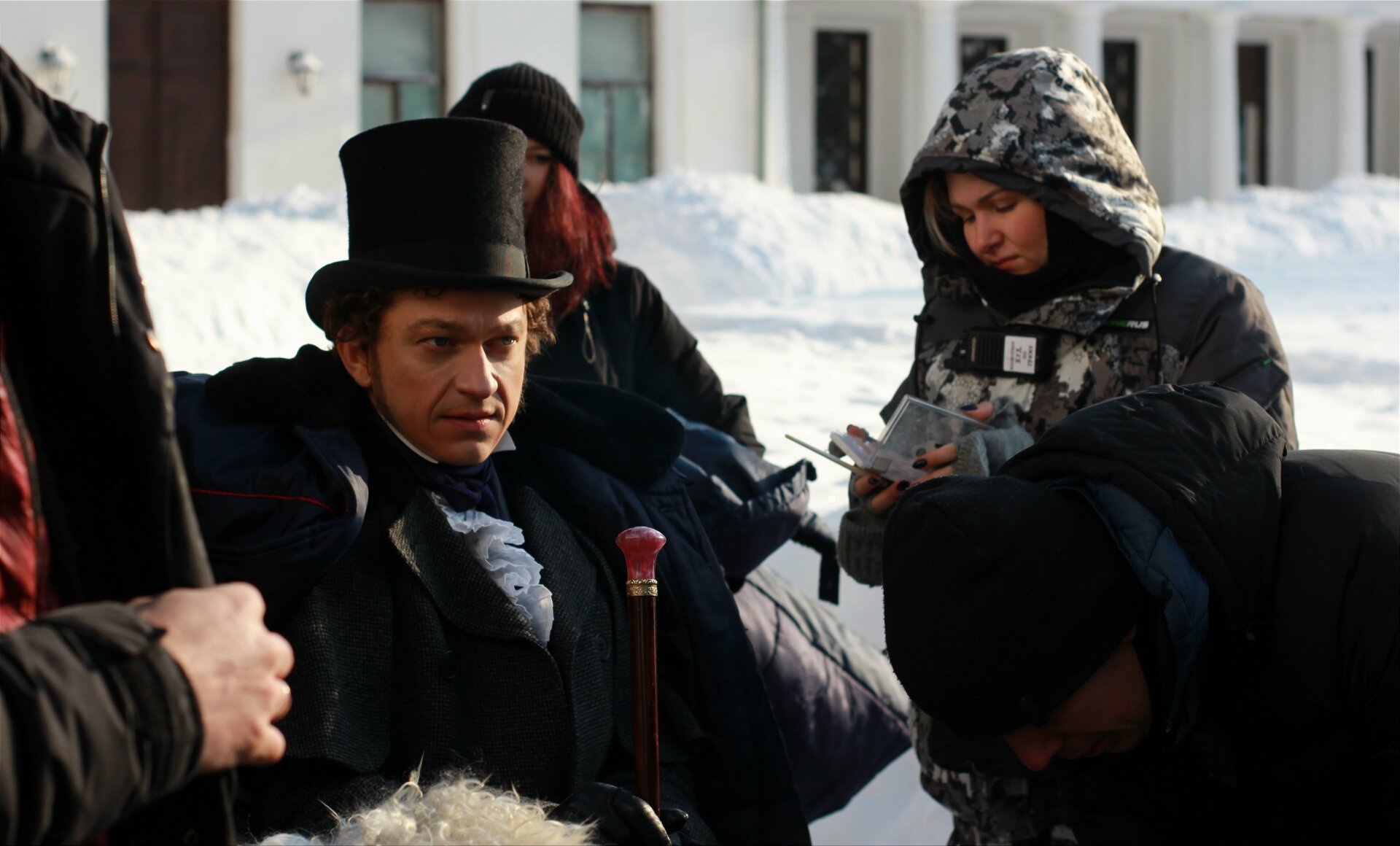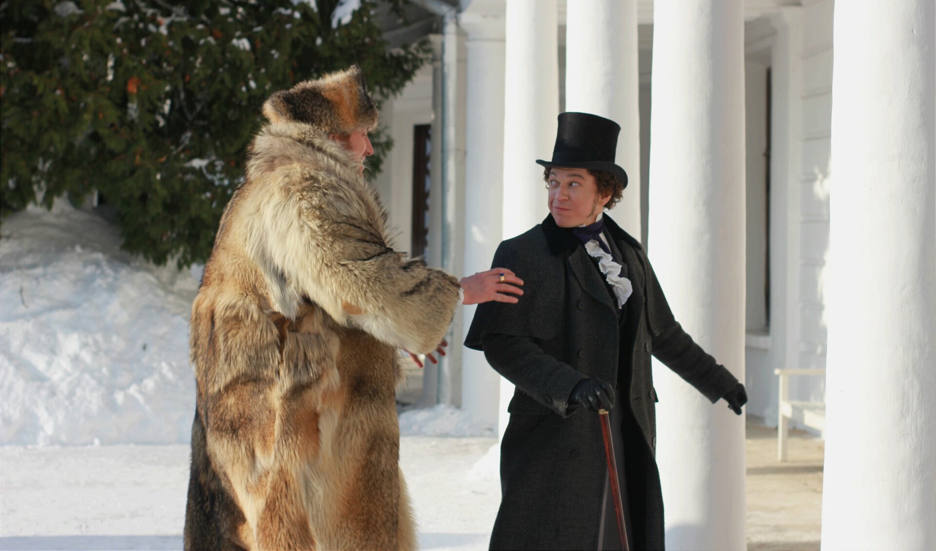Костюмеры повторили знаменитый цилиндр, сюртуки и другие элементы одежды. Особенное внимание уделили рубашке Пушкина, которая хранится в музее Пушкина: на ней был гофрированный воротничок, который приходилось ежедневно стирать и перешивать.