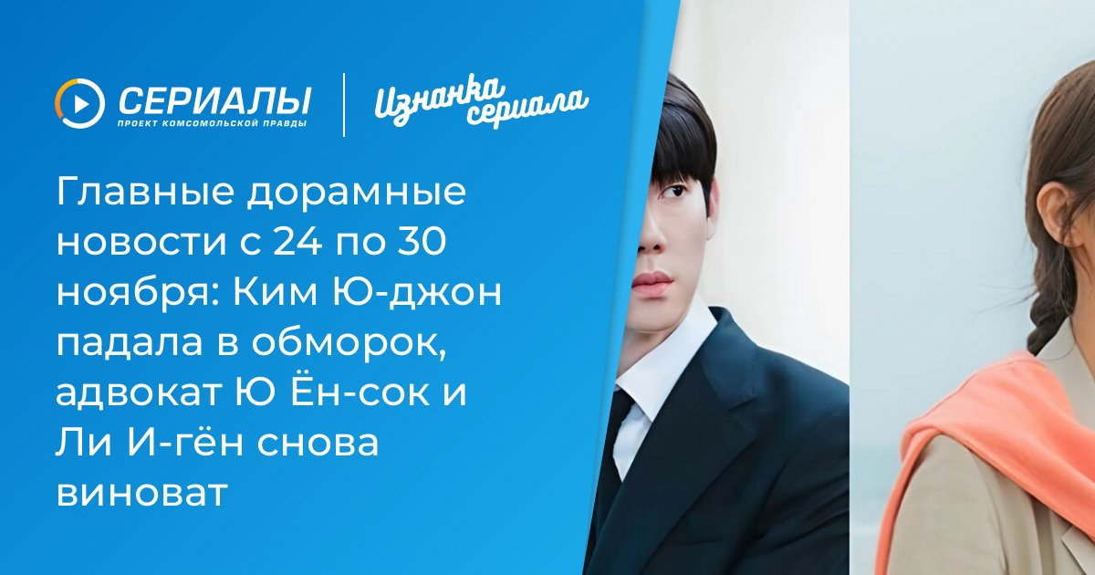 Главные дорамные новости с 24 по 30 ноября: Ким Ю-джон падала в обморок, адвокат Ю Ён-сок и Ли И-гён снова виноват