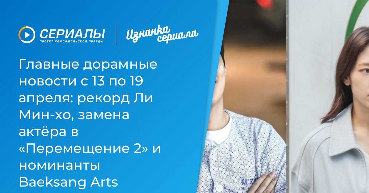 Главные дорамные новости с 13 по 19 апреля: рекорд Ли Мин-хо, замена актёра в «Перемещение 2» и номинанты Baeksang Arts Awards