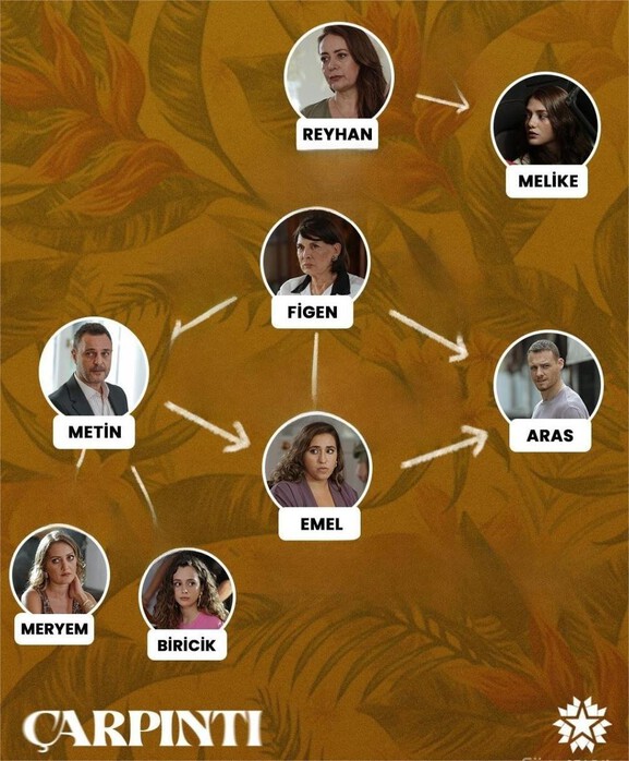 - Метин (Огюн Каптаноглу) — старший сын Фиген, брат Эмель и Араса. Именно он сейчас занимается семейным бизнесом, но все свои решения мужчина должен согласовывать с матерью. Ему не нравится ее тотальный контроль, но и выступить открыто против Фиген Метин не может, так как боится лишиться наследства. Он женат и имеет дочь. Но появление семьи Гюнеш заставляет Метина сильнее переживать за семейные деньги, чем за супругу и собственную наследницу.